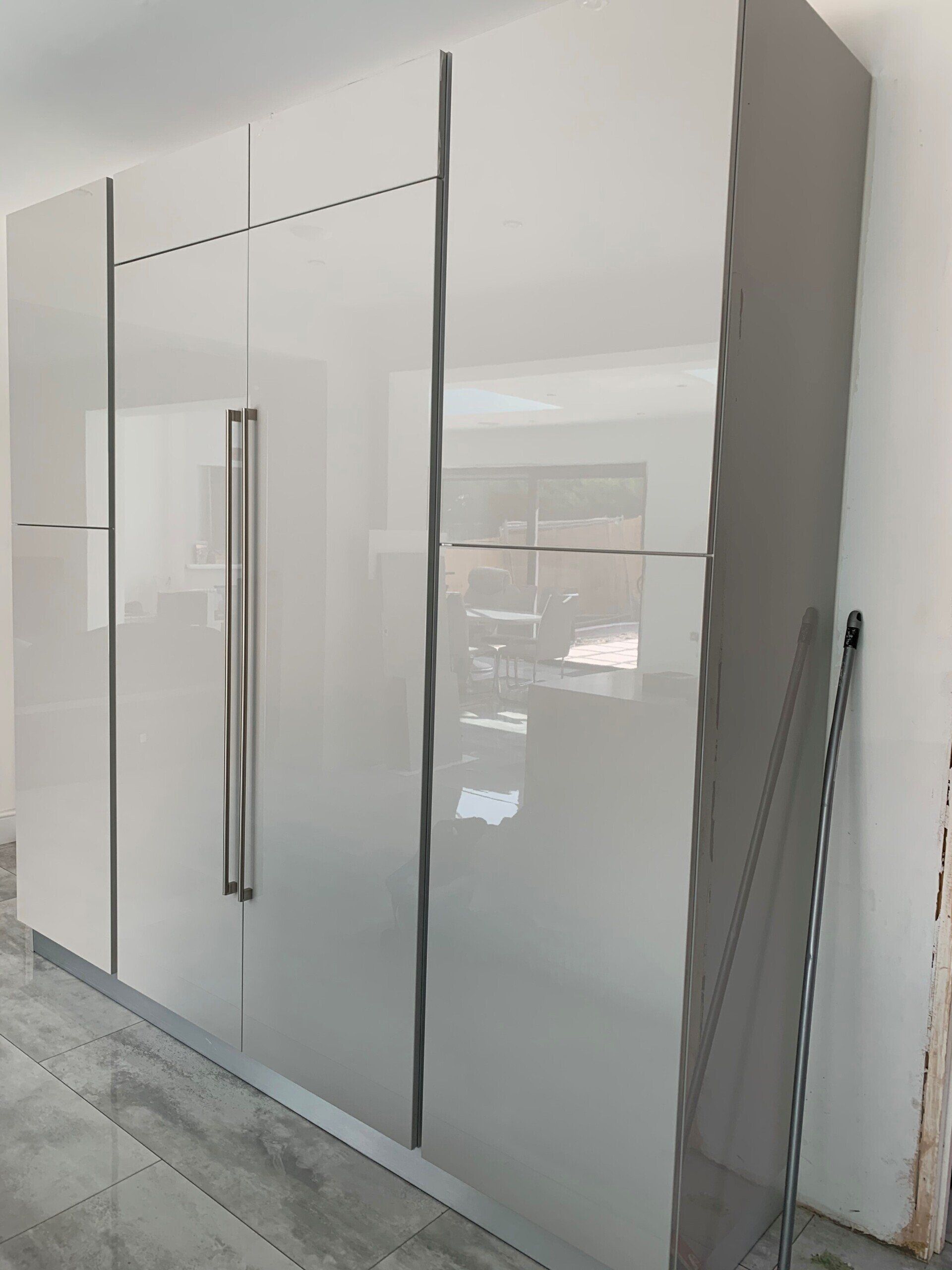 Tall Larder Units With Comprising Of Breakfast Cupboard With Pull-Out Storage & Lighting